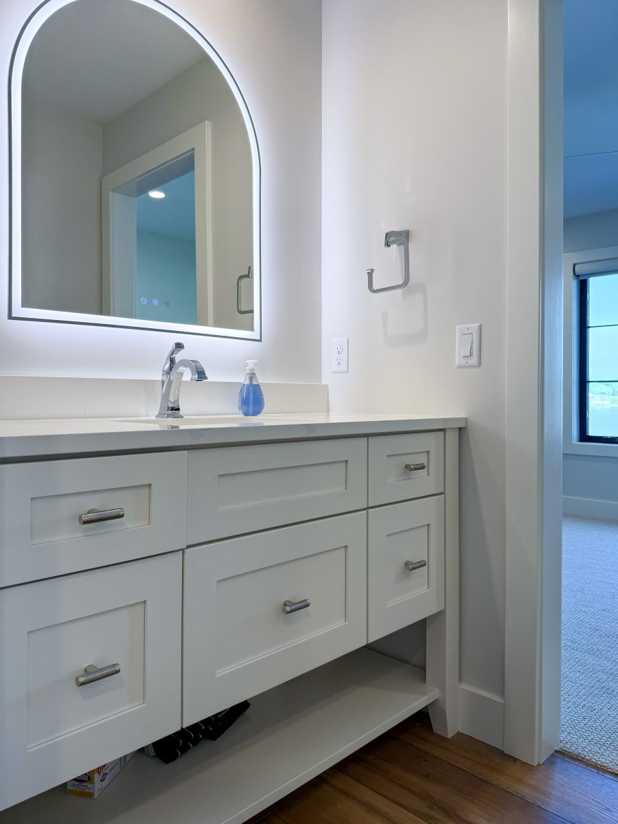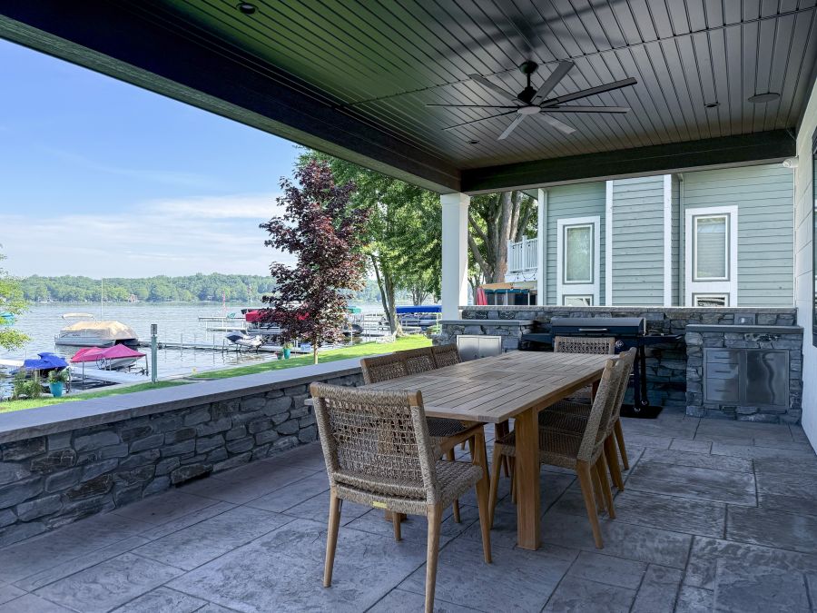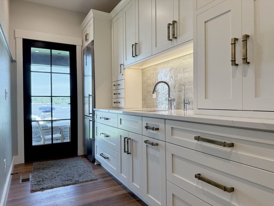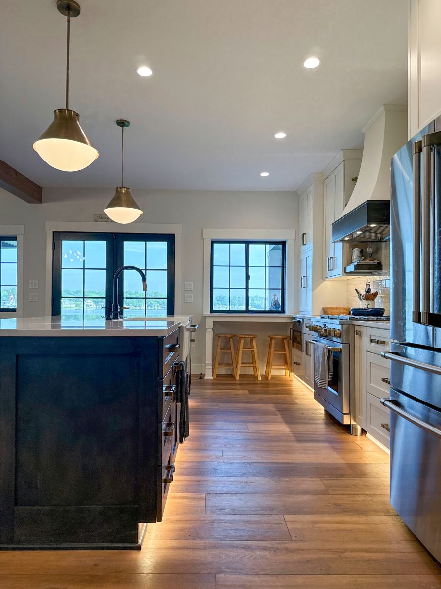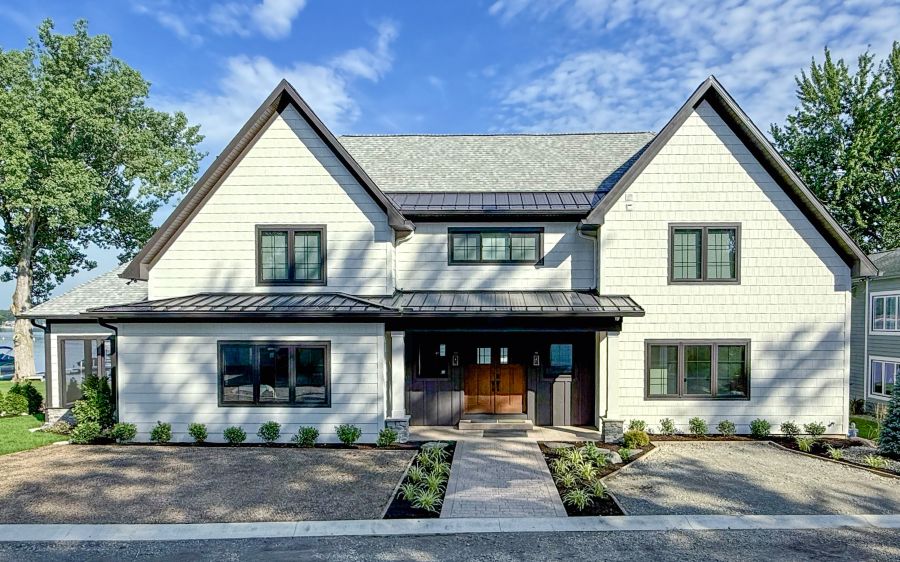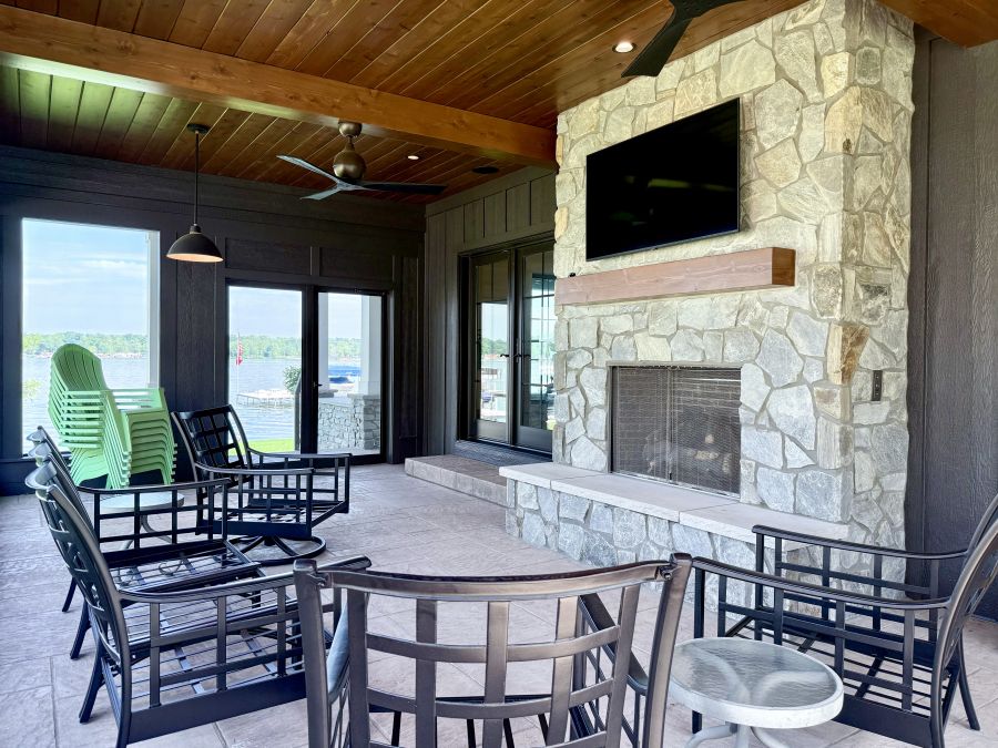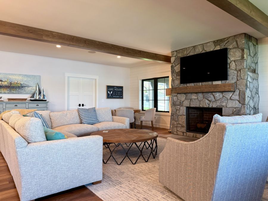 Overlooking the peaceful shores of Tippy Lake, this 4,360-square-foot custom home—with nearly 1,500 square feet of porch space—is made for lakeside living and effortless entertaining. Inside, five spacious bedrooms and two bunkrooms offer plenty of room for guests, while the open-concept layout connects an oversized kitchen, dining space, and great room in perfect harmony. Natural textures and soft tones are woven throughout—from the earthy LVP flooring to the inviting cabinetry and stone accents in the bar and pantry areas. Outside, double porches, a grilling station, and a screened porch with fireplace and TV make it easy to relax and take in the lake views, day or night.