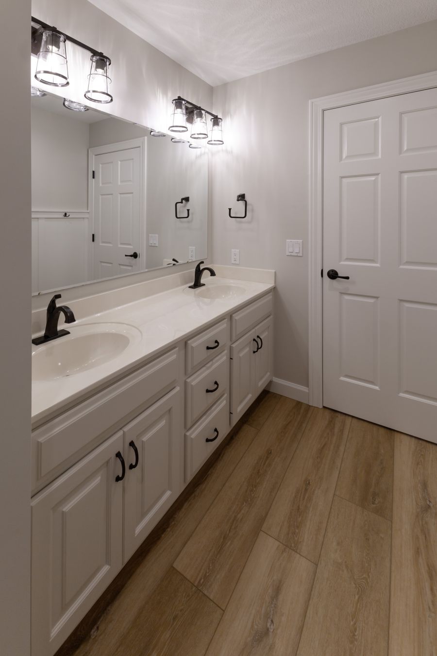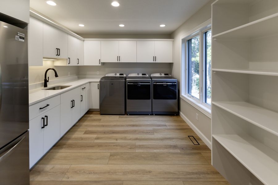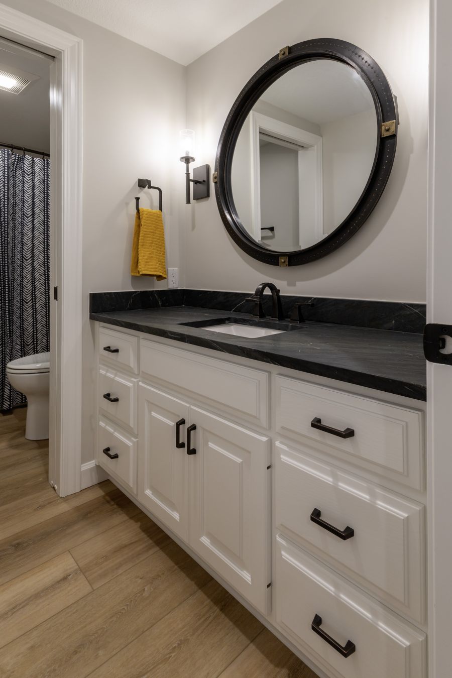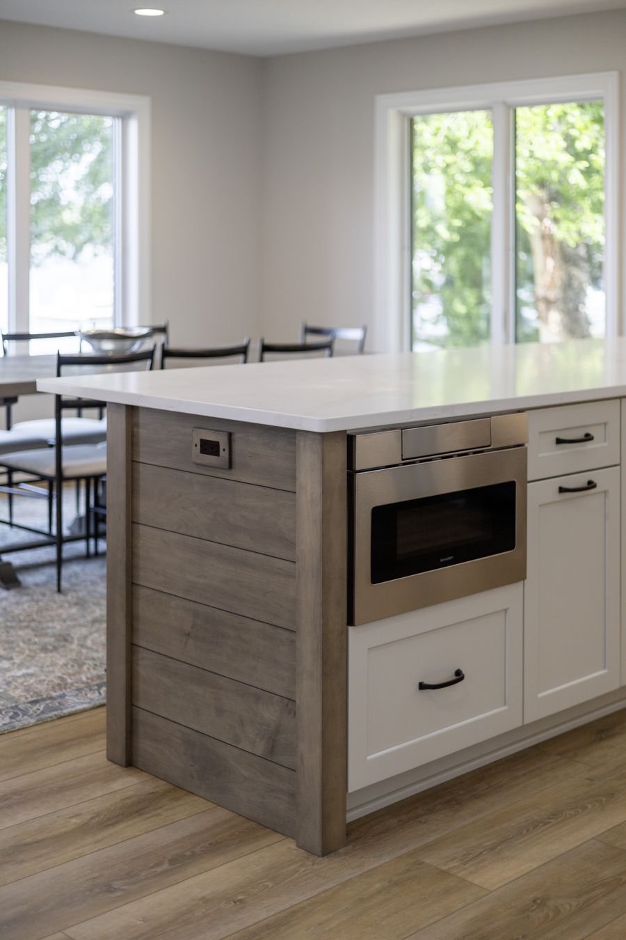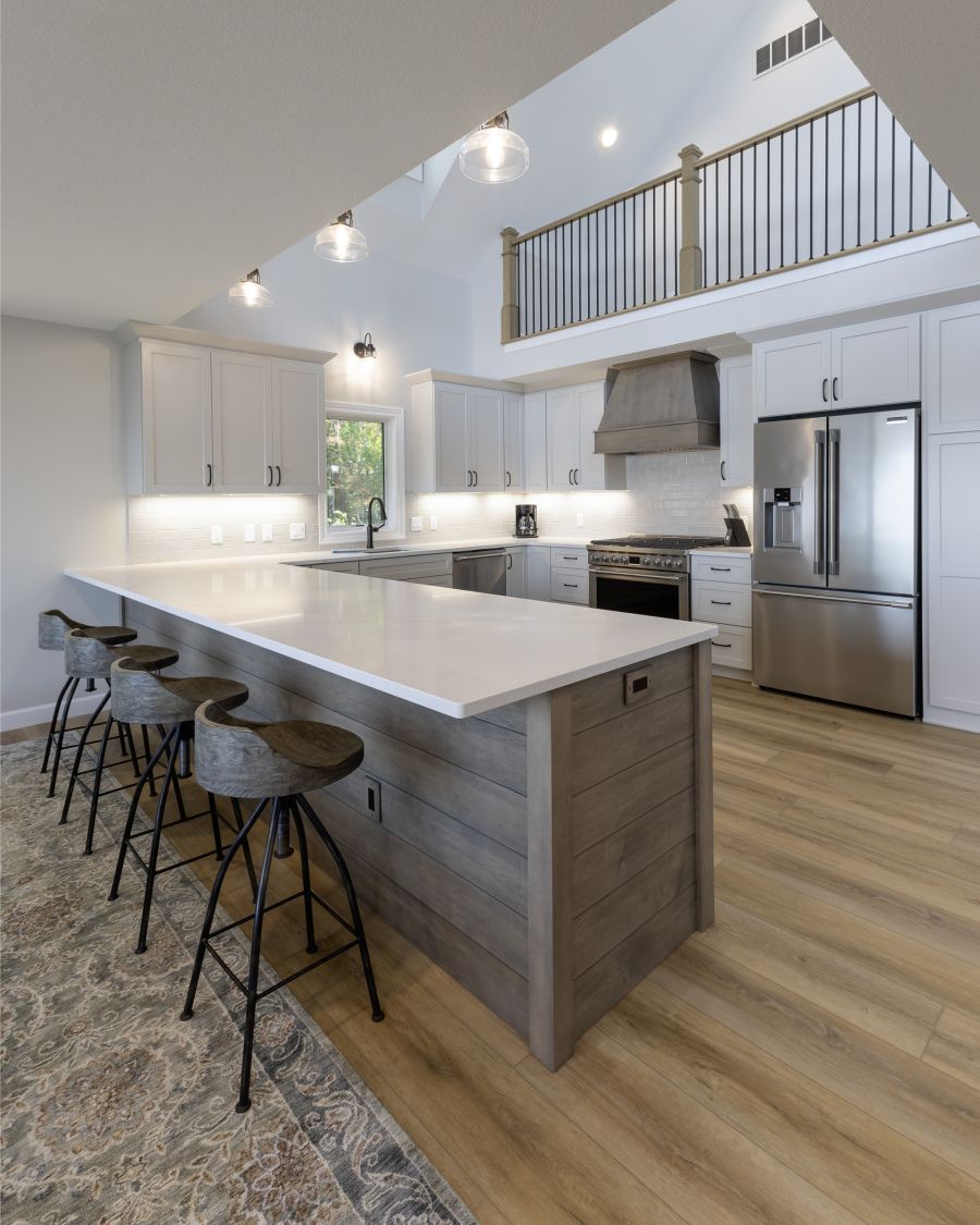 This stunning lakefront remodel on Wawasee blends thoughtful design with elevated comfort across five bedrooms, a bunk room, and three updated bathrooms. The transformation included a completely reimagined kitchen, refreshed bedrooms and baths, and a brand-new lakeside porch addition for enjoying waterfront views year-round. Inside, custom cabinetry, polished quartz countertops, and vintage-inspired finishes create a warm, timeless atmosphere. A standout feature is the open catwalk above the kitchen, leading to the private upper bedrooms. From the new walk-in master shower to the extended kitchen bar seating, every detail was carefully curated to make this remodel feel fresh, inviting, and ready for lakeside living.
