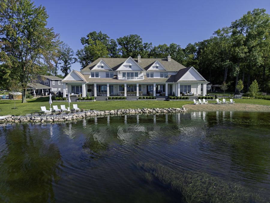 This stunning French Country lake home on Tippy Lake blends timeless elegance with modern luxury. With five bedrooms, a bunk room, and six and a half baths, its thoughtful design ensures comfort and charm throughout. Highlights include a lakeside patio with an outdoor kitchen, warm wood tones from the LVP flooring, and captivating stone fireplaces, all perfectly framed by picturesque lake views.