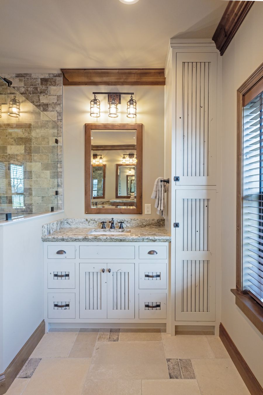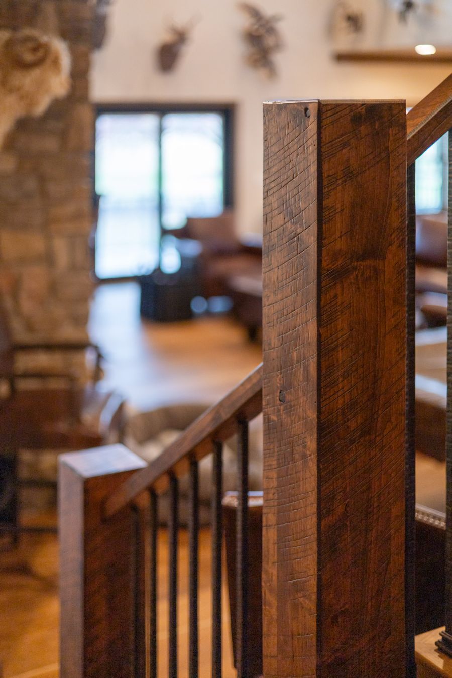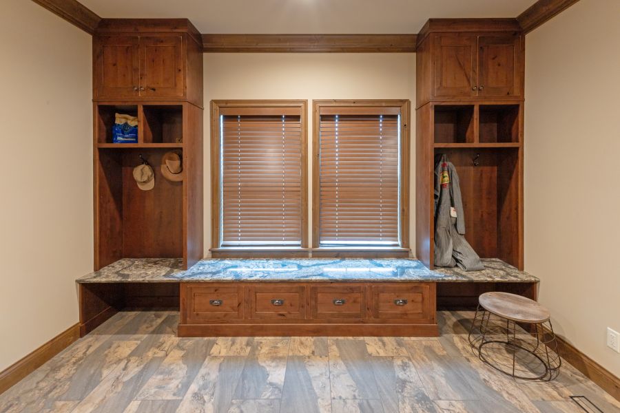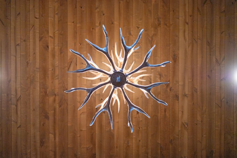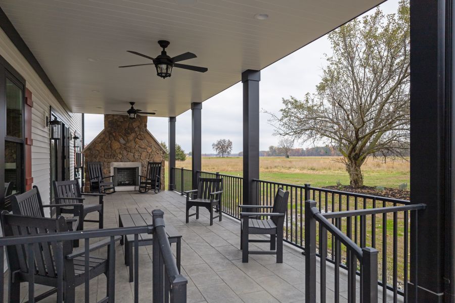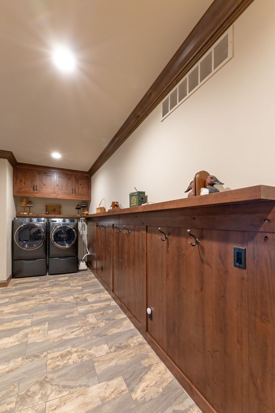 This rustic hunting lodge in Coldwater, MI, perfectly captures the essence of the great outdoors. With five bedrooms, three and a half baths, and 4,095 square feet of space, it offers the warmth and charm of a retreat while embracing luxurious touches. The centerpiece is a stunning floor-to-ceiling stone fireplace in the great room, complemented by antler chandeliers and rustic hardwood floors. Mounted wildlife and custom knotty alder cabinets complete the lodge ambiance, making it a haven for nature enthusiasts. Outside, a cozy patio with a wood-burning fireplace invites you to unwind in the natural surroundings.