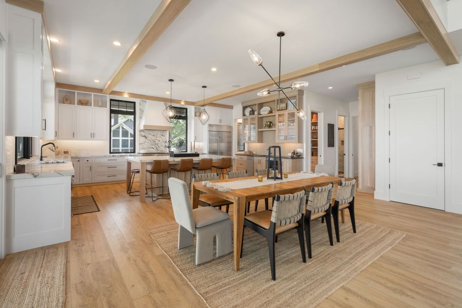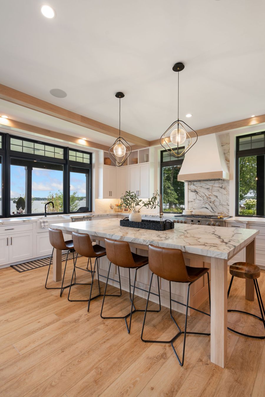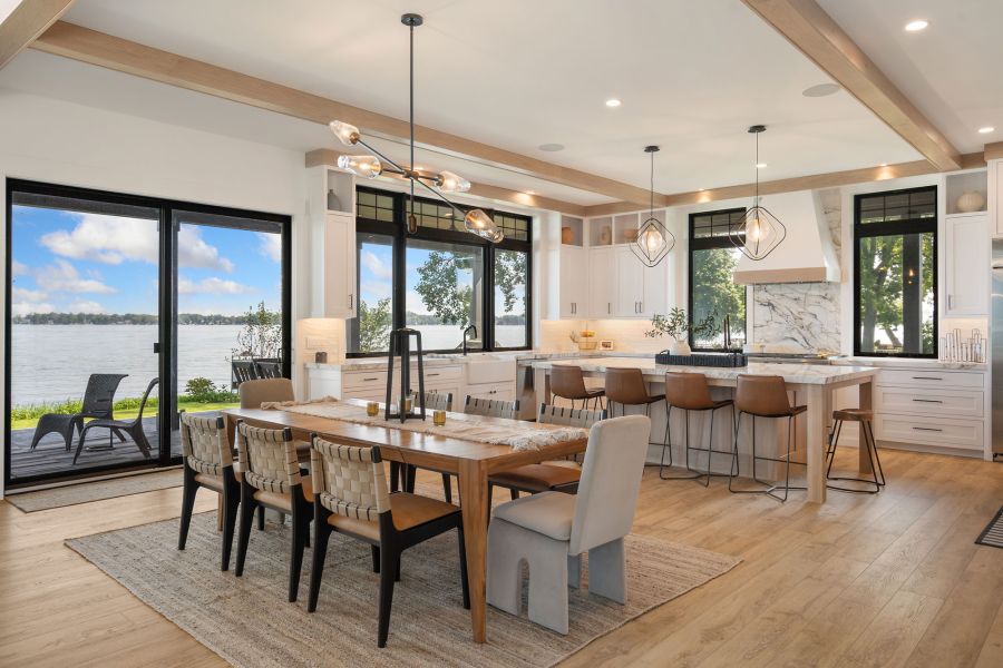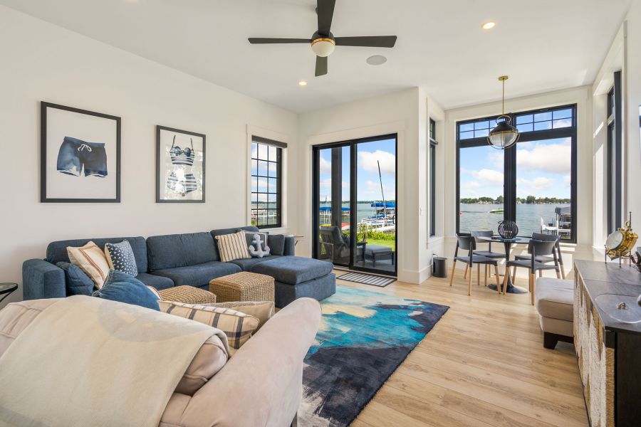 Nestled in Syracuse, this stunning 5,452-square-foot lakeside retreat masterfully combines modern luxury with timeless charm. With four bedrooms, a cozy bunk room, and six baths, this home offers plenty of space for both relaxation and entertaining.